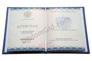 На нашем сайте Вы можете аттестат о среднем общем образовании (11 классов) без обучения, выданный любым школой Москвы и других городов России в период с 2014 по 2021 год. В комплект входит бланк, обложка и приложение, оформленные по всем стандартам.