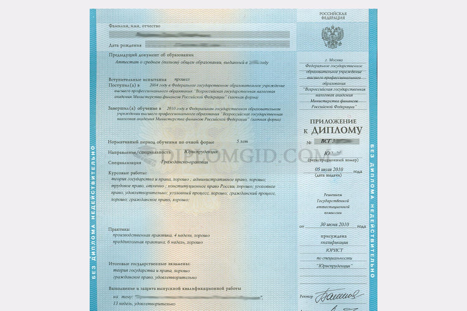 Настоящий диплом как в ВУЗе, пройдёт все проверки на подлинность;
