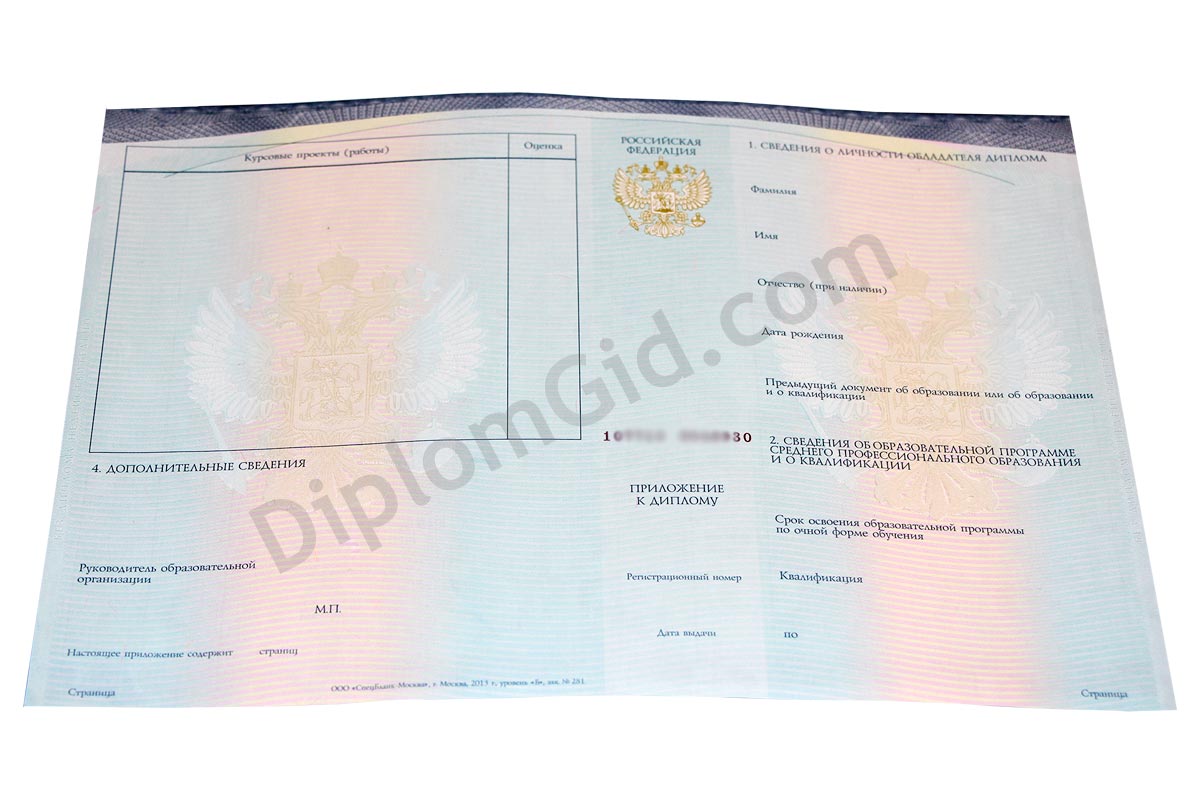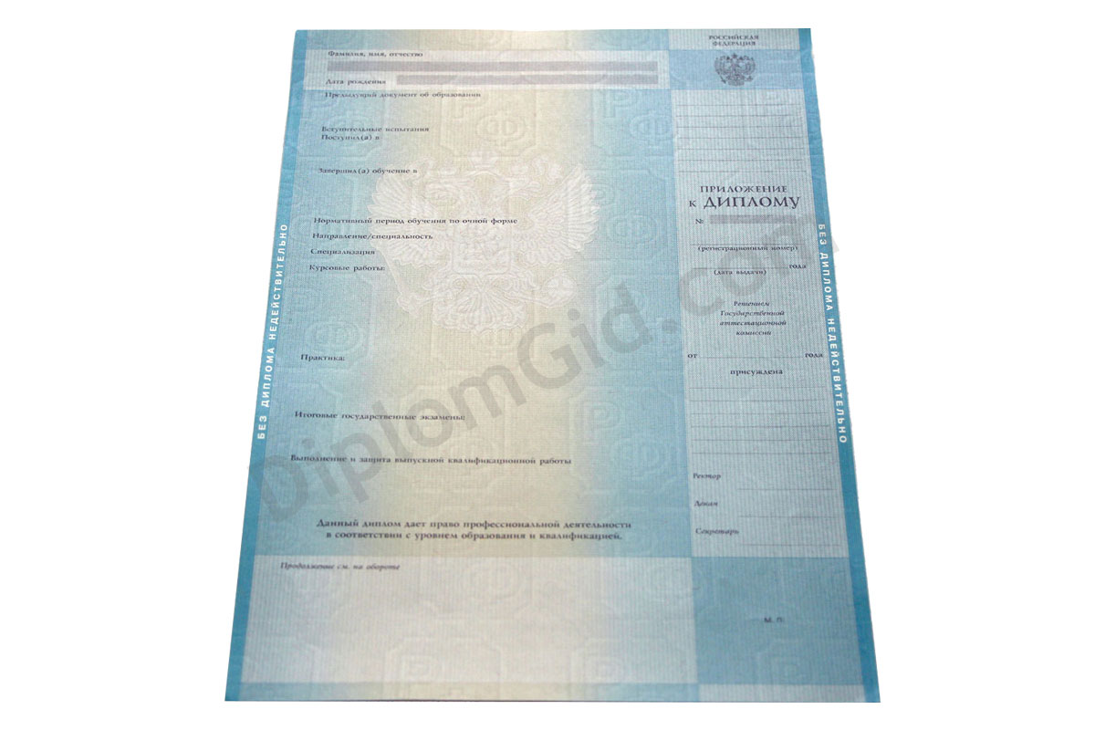 На нашем сайте Вы можете купить приложение к диплому вуза или техникума, а также вкладыш к аттестату отдельно от самого документа. В вашем приложении будут указаны только те оценки, названия курсовых и дипломной работы, которые Вам необходимы! Заверяется настоящейй печатью учебного заведения и подписями должностных лиц.